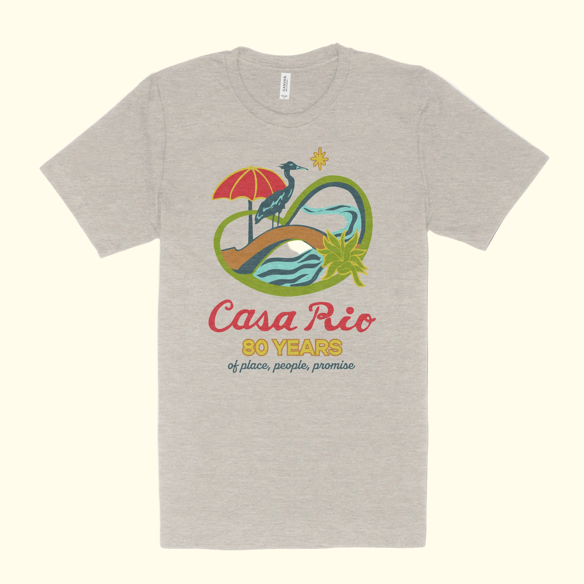 Mark Casa Rio's 80th anniversary with this limited-edition tshirt, featuring the brand's milestone logo. The design embodies the numerological significance of 80—the 8 representing strength and unbroken continuity, the 0 symbolizing boundless possibility. Since 1946, Casa Rio has anchored riverside hospitality through eight decades of tradition. This commemorative piece honors the generations who built the foundation while celebrating the thoughtful evolution and creative vision shaping the next era of their story.